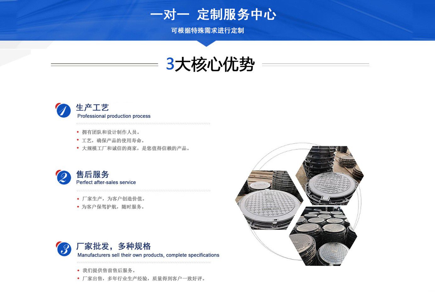 山東聊城健暉鑄造有限公司主營各種球墨鑄鐵井蓋,球墨鑄鐵防盜井蓋,球墨鑄鐵方形井蓋,球墨鑄鐵井蓋廠家等產品,可廣泛應用于市政建設、軌道交通設施、城市園林綠化、安防配套設施、石油化工等諸多領域。  產品采用良好的工藝流程,以確保產品質量的穩定性:以良好的檢測設備,確保質量的可靠性。廣泛應用于國內外城市的市政建設,通信,自來水,消防,園林,環保等行業,產品大獲贊譽!  我們堅持“質量為本、用戶至上、科技創新、科學管理”的經營方針。  面向未來,我們積極響應新時代的號召,走“一帶一路”、堅持“綠色環保”的國家方針政策,秉承“安甄致選,普利天下”的企業理念,共同鑄就新時代的輝煌篇章。...